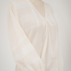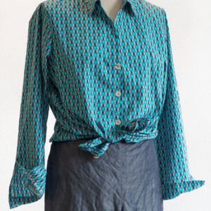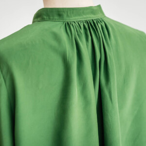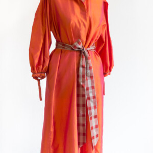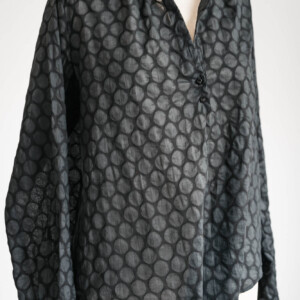 En accord avec le client, elle réalise des vêtements sur mesure, uniques, en jouant avec les tissus et les boutons, véritables source d’inspiration.